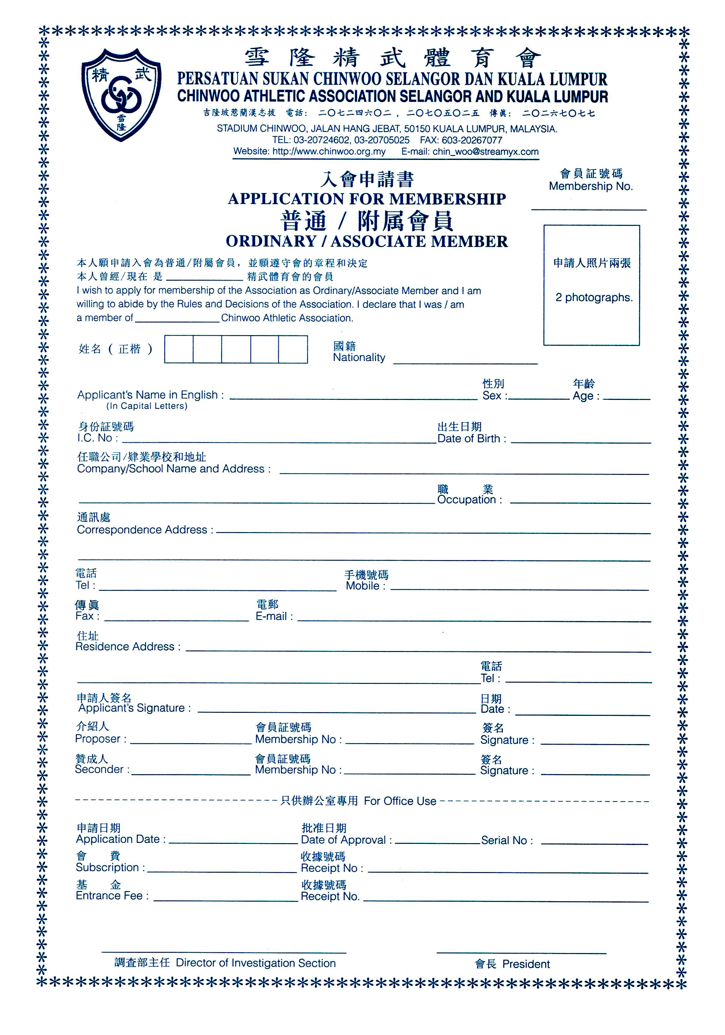 - 任何欲申请成为本会会员者, 须填妥申请入会表格, 并由本会有投票权会员一名介绍,一名赞成。