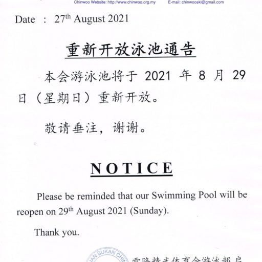 重新开放泳池通告